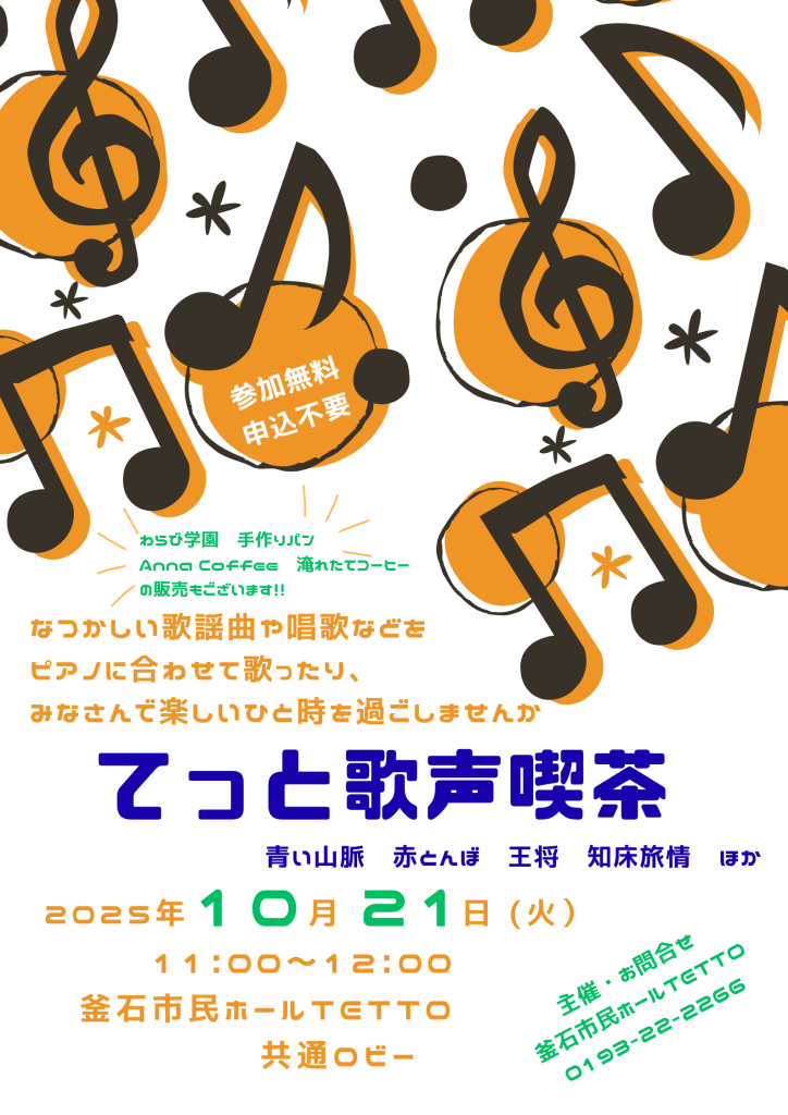 釜石市民ホールTETTO 0193-22-2266 daihyo*tetto-kamaishi.jp *を@に変えて送付お願いします |