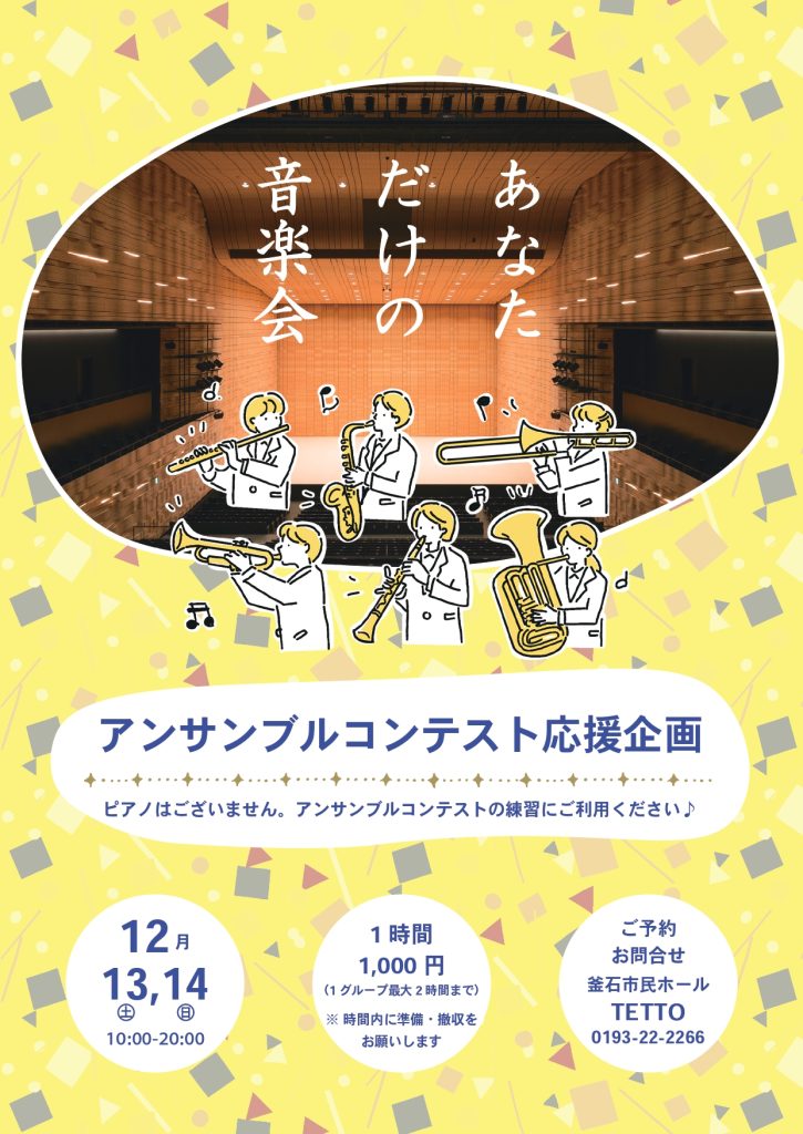 「あなただけの音楽会♪ アンサンブルコンテスト応援企画」を開催いたします!コンテストの練習にぜひご利用ください!