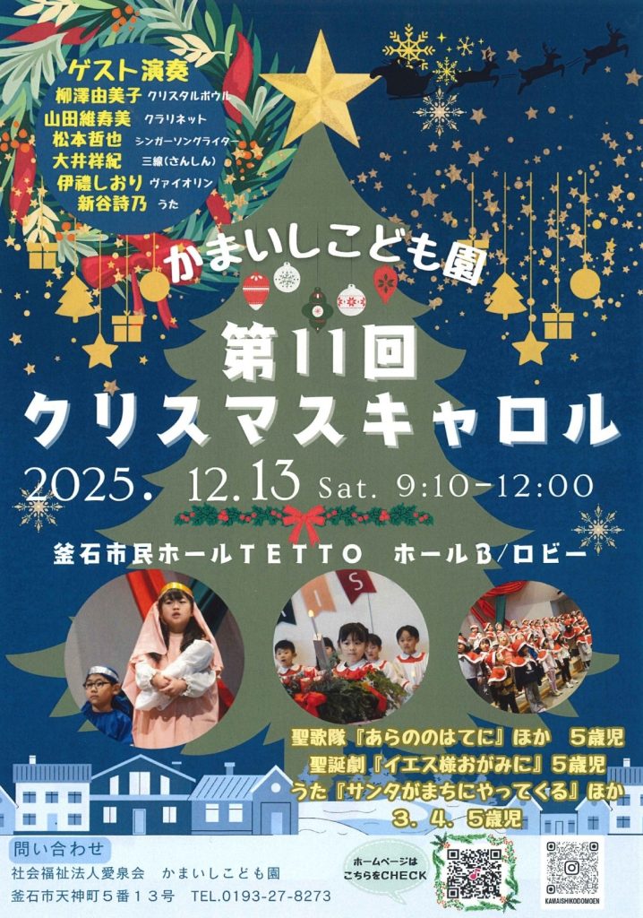 第11回かまいしこども園クリスマスキャロル キッズ イベント概要 開催日 2025年12月13日(土) 開催時間 9:00 〜 12:00 会場 釜石市民ホールTETTO ホールB, 共通ロビー 料金 無料 お問い合わせ 社会福祉法人 愛泉会 かまいしこども園 0193-27-8273 share